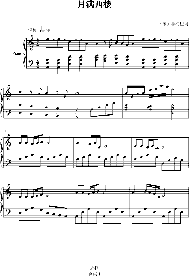 [鋼琴譜]月滿西樓-中國名曲 未知