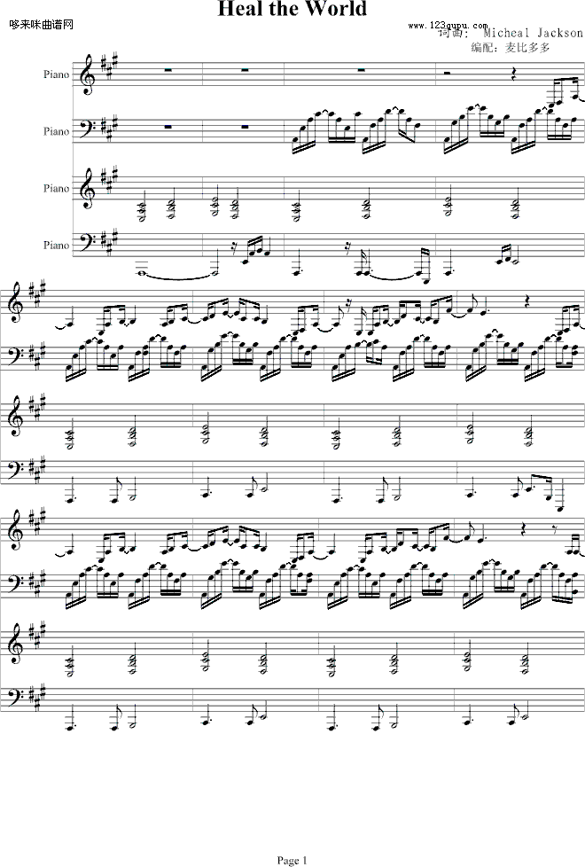 [鋼琴譜]Heal the World-四手聯(lián)彈-Micheal Jackson 未知