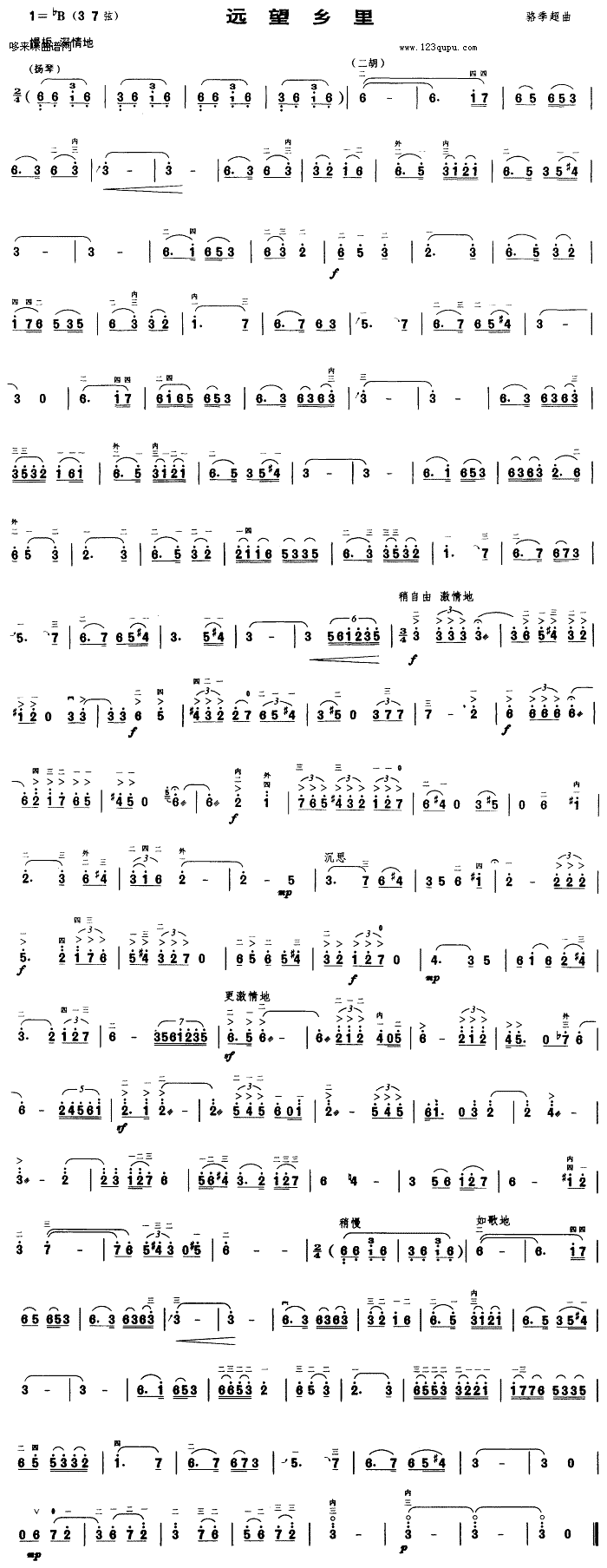 [二胡譜]遠(yuǎn)望鄉(xiāng)里