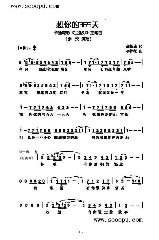 > 想你的365天 歌曲類 簡譜