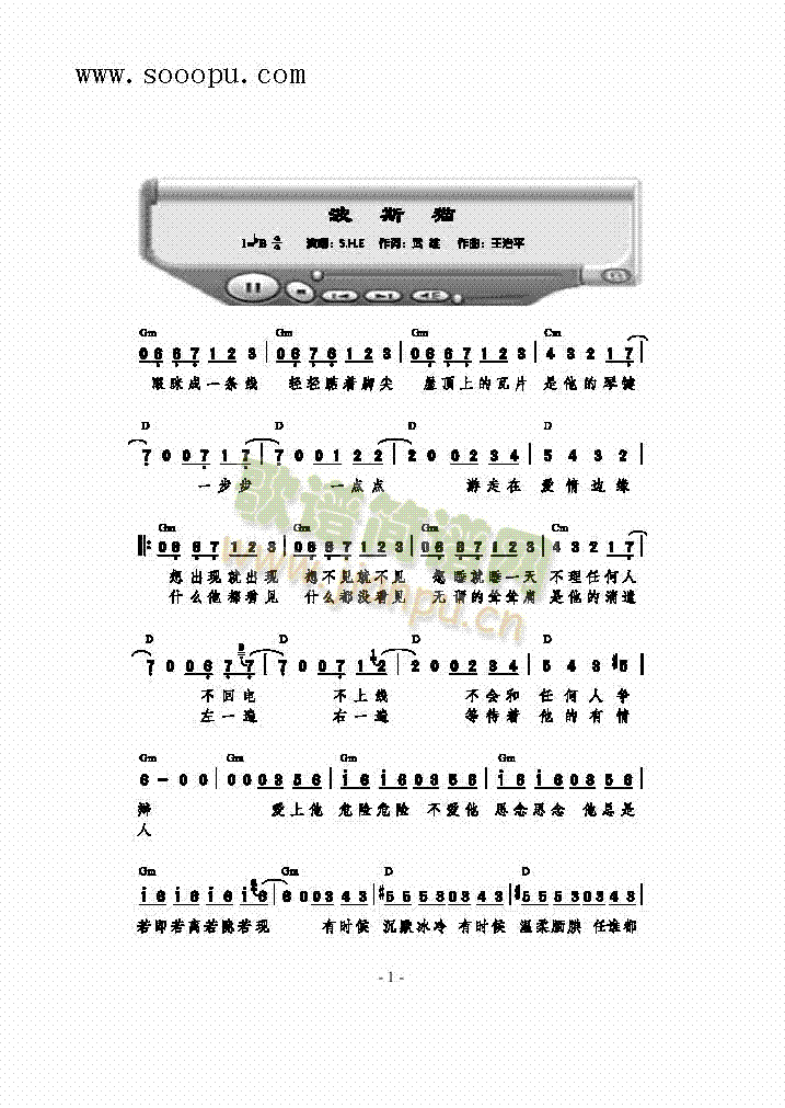 > 波斯貓 歌曲類(lèi) 簡(jiǎn)譜