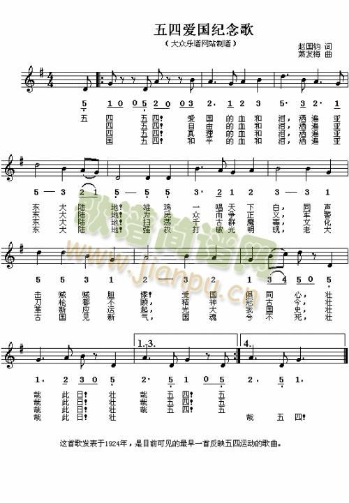 [五字歌譜]五四紀(jì)念歌