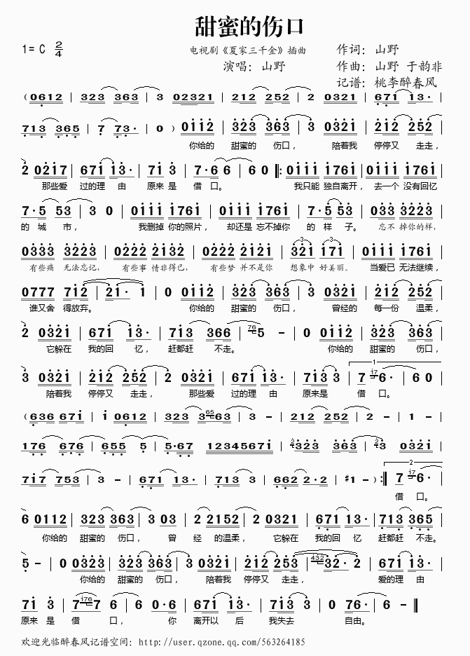[五字歌譜]甜蜜的傷口(《夏家三千金》插曲) 山野