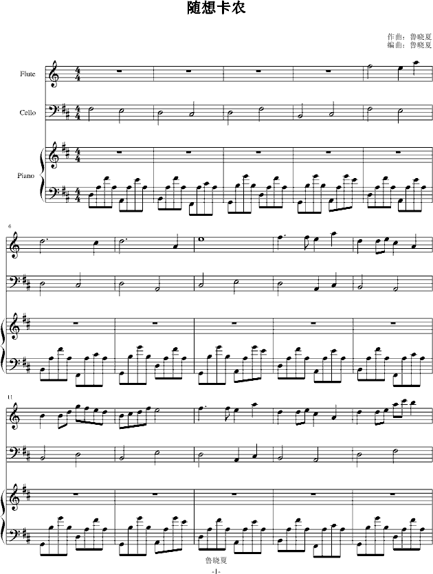 隨想卡農(nóng)(鋼琴小提大提)-鋼琴譜(鋼琴曲)-魯曉夏