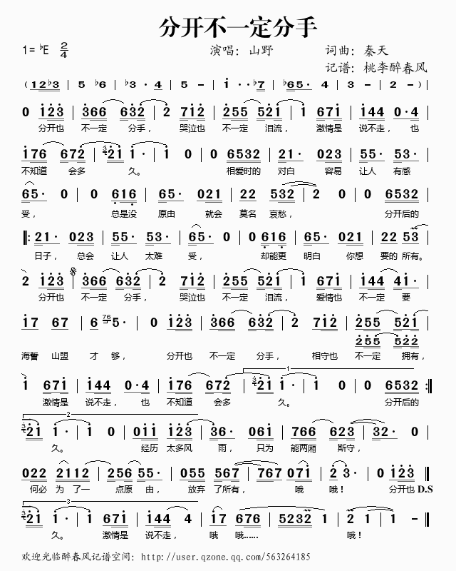 [七字歌譜]分開(kāi)不一定分手 山野
