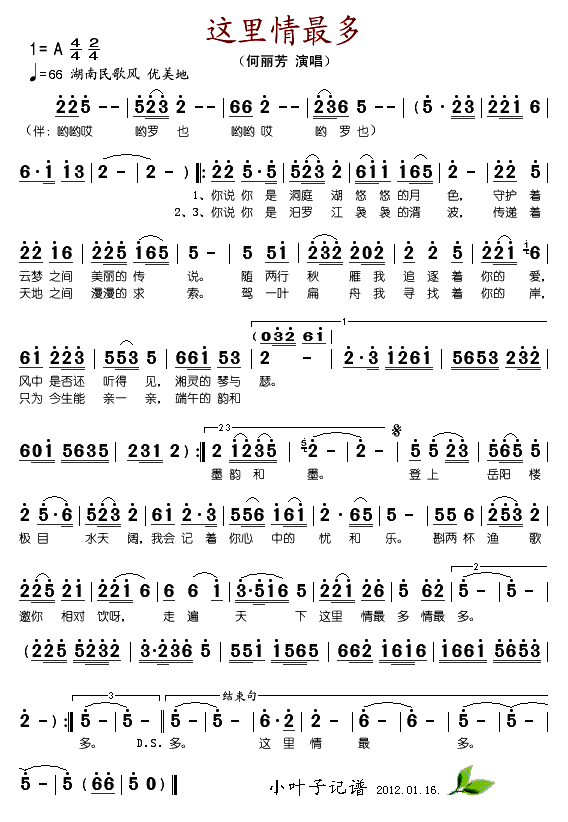 [七字歌譜]今日苗山歌最多[彩譜] 宋祖英