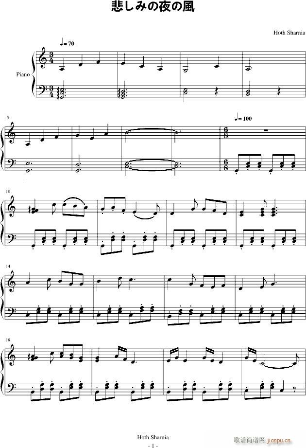 [鋼琴譜]悲しみの夜の風(fēng) Sharnia