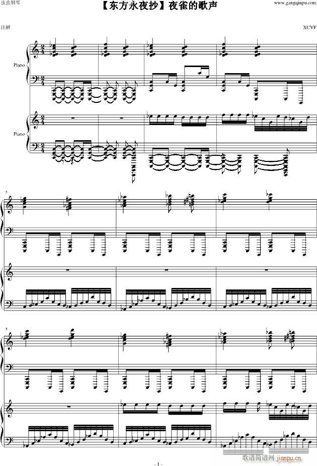 [鋼琴譜]【東方永夜抄】夜雀的歌聲 東方project