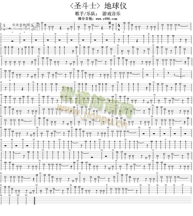 [吉他譜]地球儀-圣斗士冥王 游戲音樂