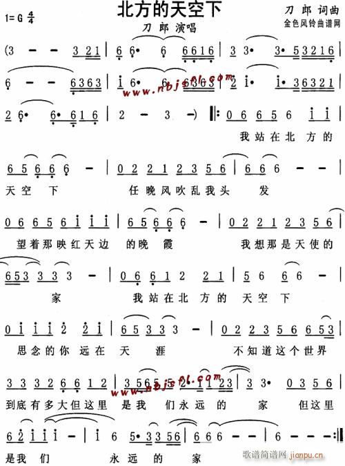 [六字歌譜]北方的天空下 刀郎