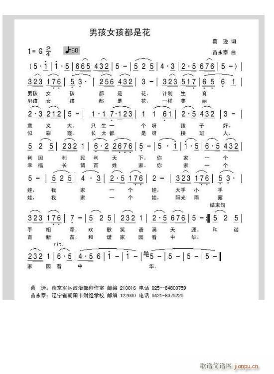 [七字歌譜][民通] 《男孩女孩都是花》葛遜詞孟妍唱