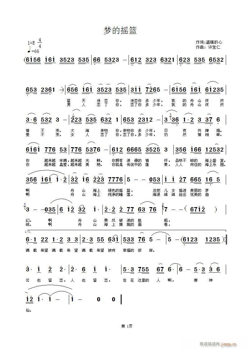 [四字歌譜]夢的搖籃 詞 溫暖的心 曲許寶仁