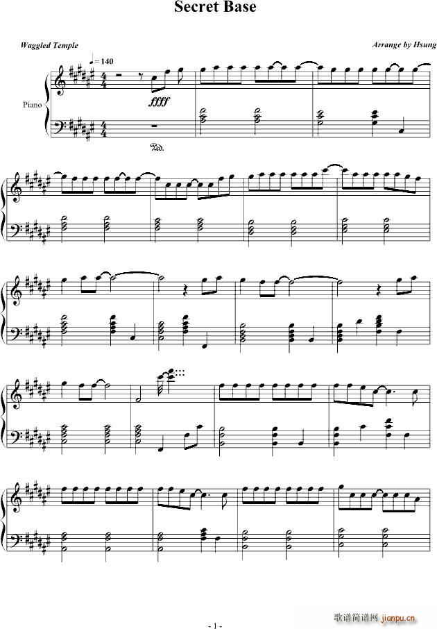 [鋼琴譜]secret base 那朵花ed 動(dòng)漫