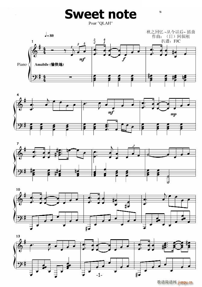 [鋼琴譜]Inori - Sweet Note 秋之回憶-動漫影視 未知
