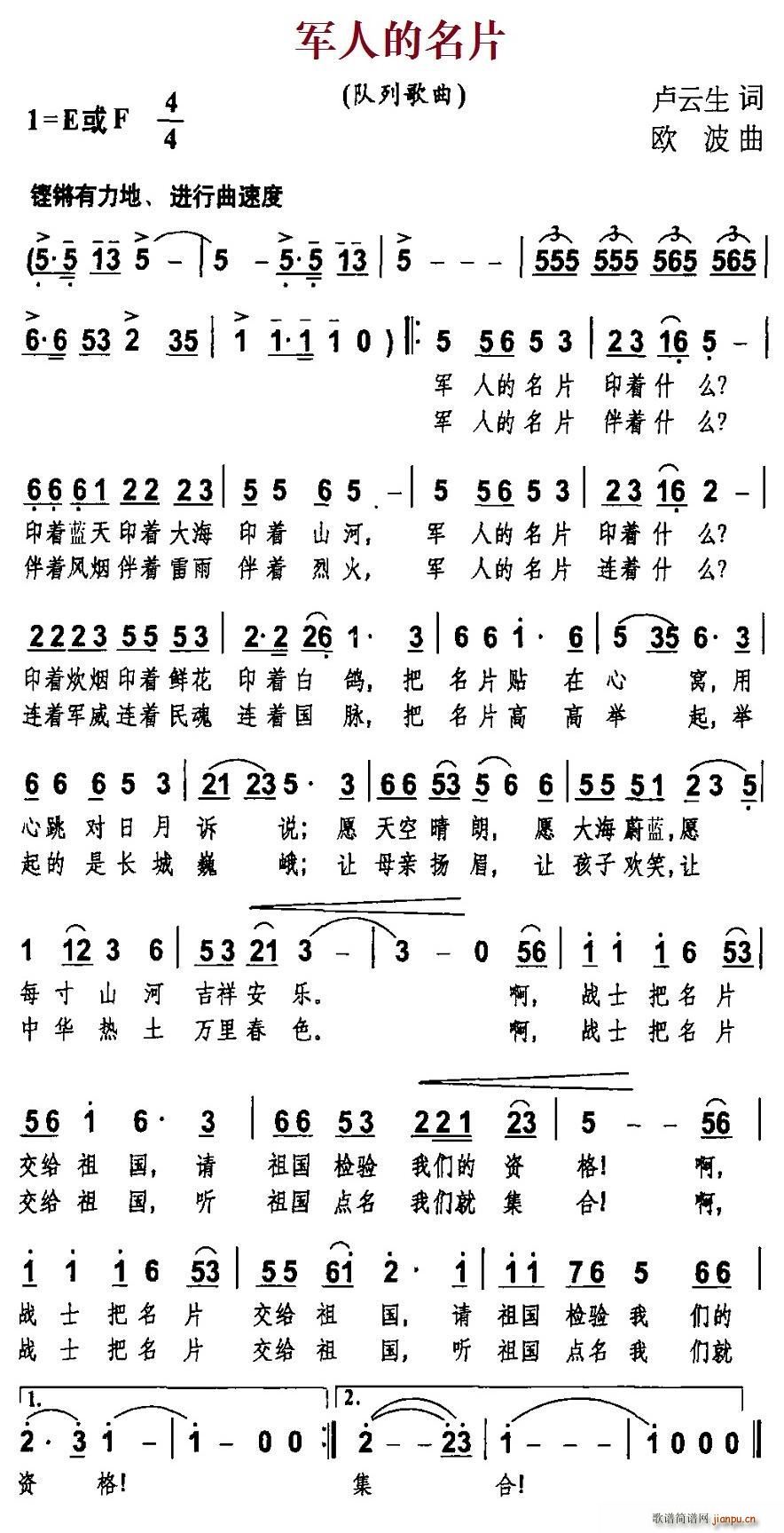 [五字歌譜]軍人的名片(盧云生詞 歐波曲)