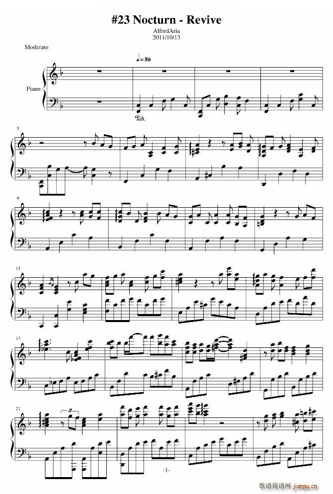 [鋼琴譜]#23 Nocturn - Revive AlfredAria