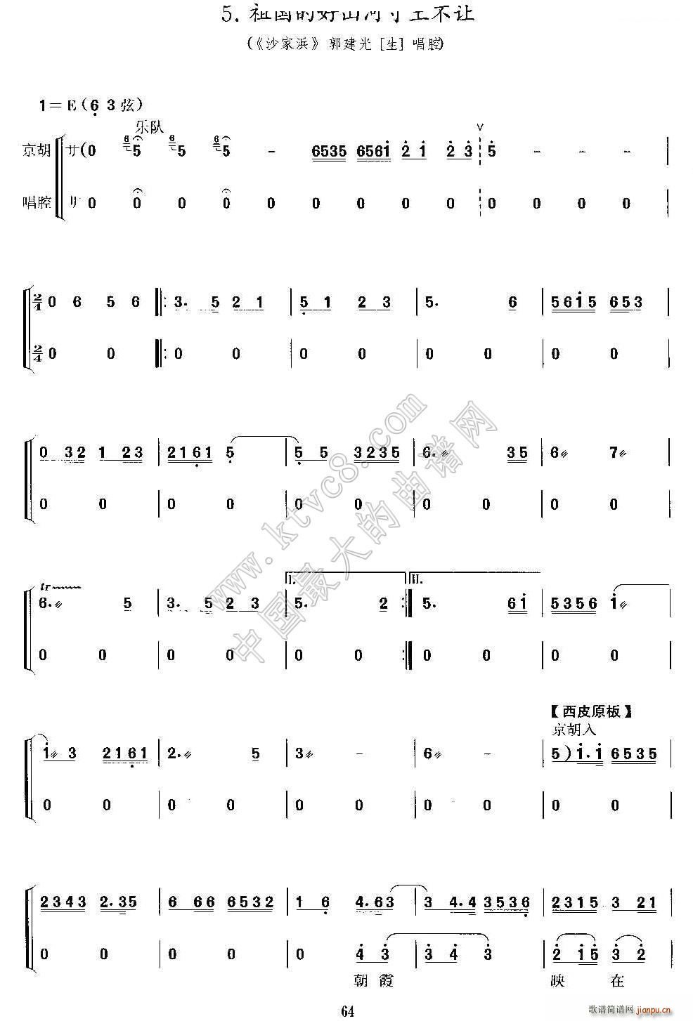 [京劇曲譜]祖國的好山河寸土不讓(《沙家浜》 唱段、二胡考級譜) 郭建光