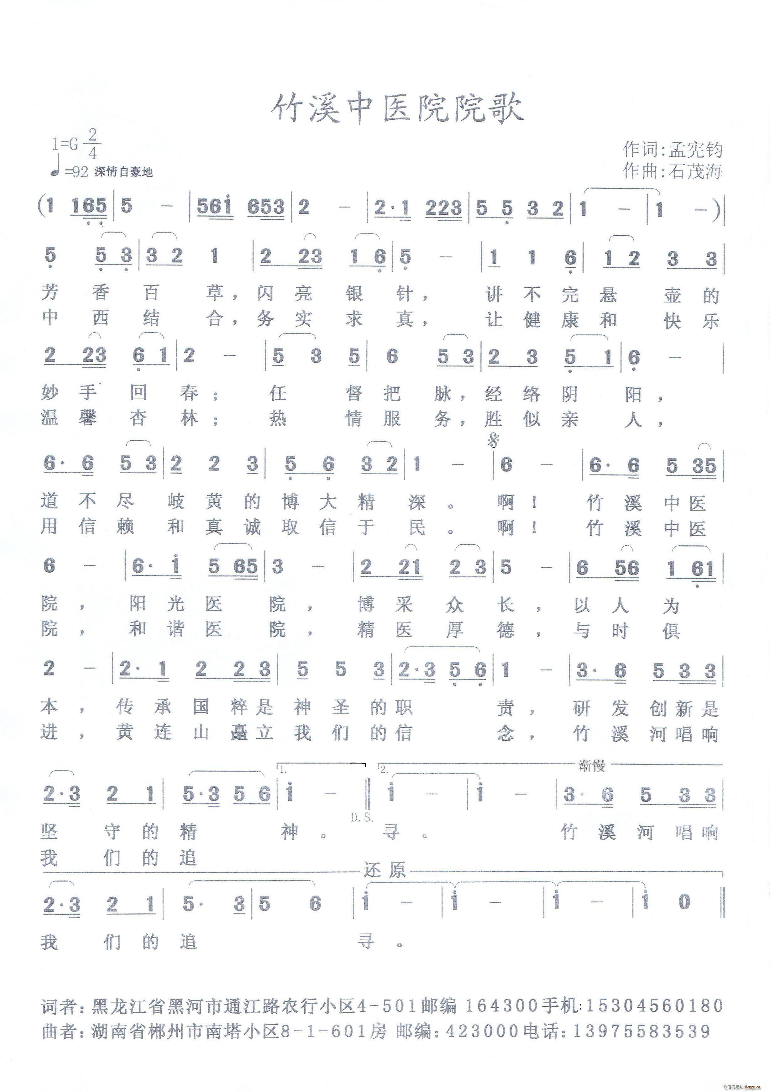 [十字及以上]竹 溪 中 醫(yī) 院 院 歌