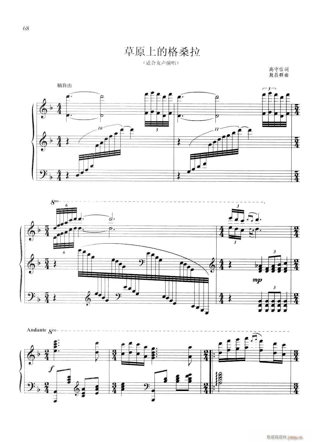 [五字歌譜]草原格桑拉