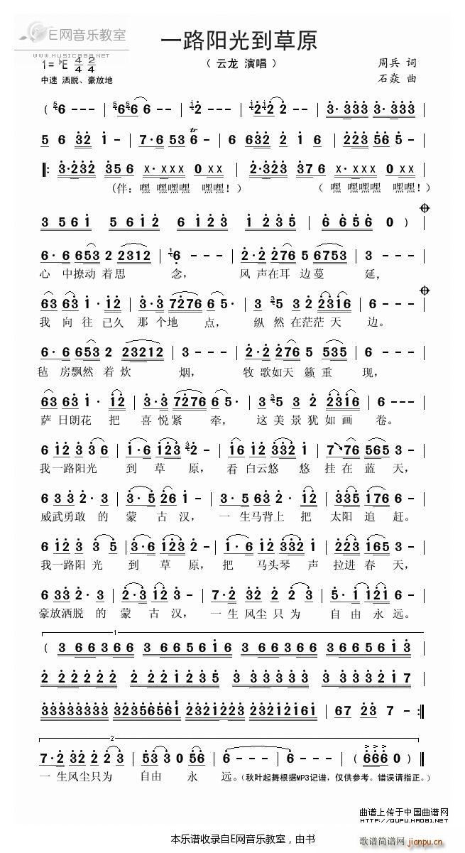 [七字歌譜]一路陽(yáng)光到草原 云龍