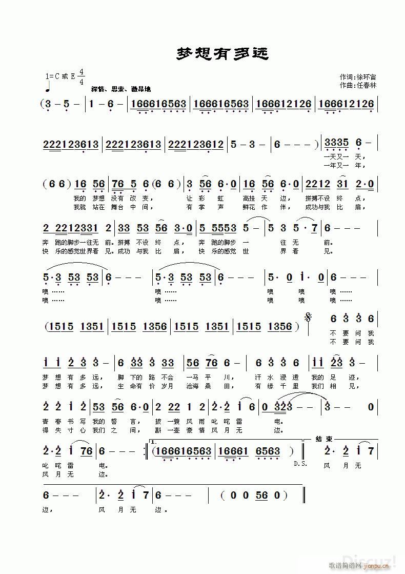 [五字歌譜]夢(mèng)想有多遠(yuǎn) 徐環(huán)宙 詞 張朱論 曲