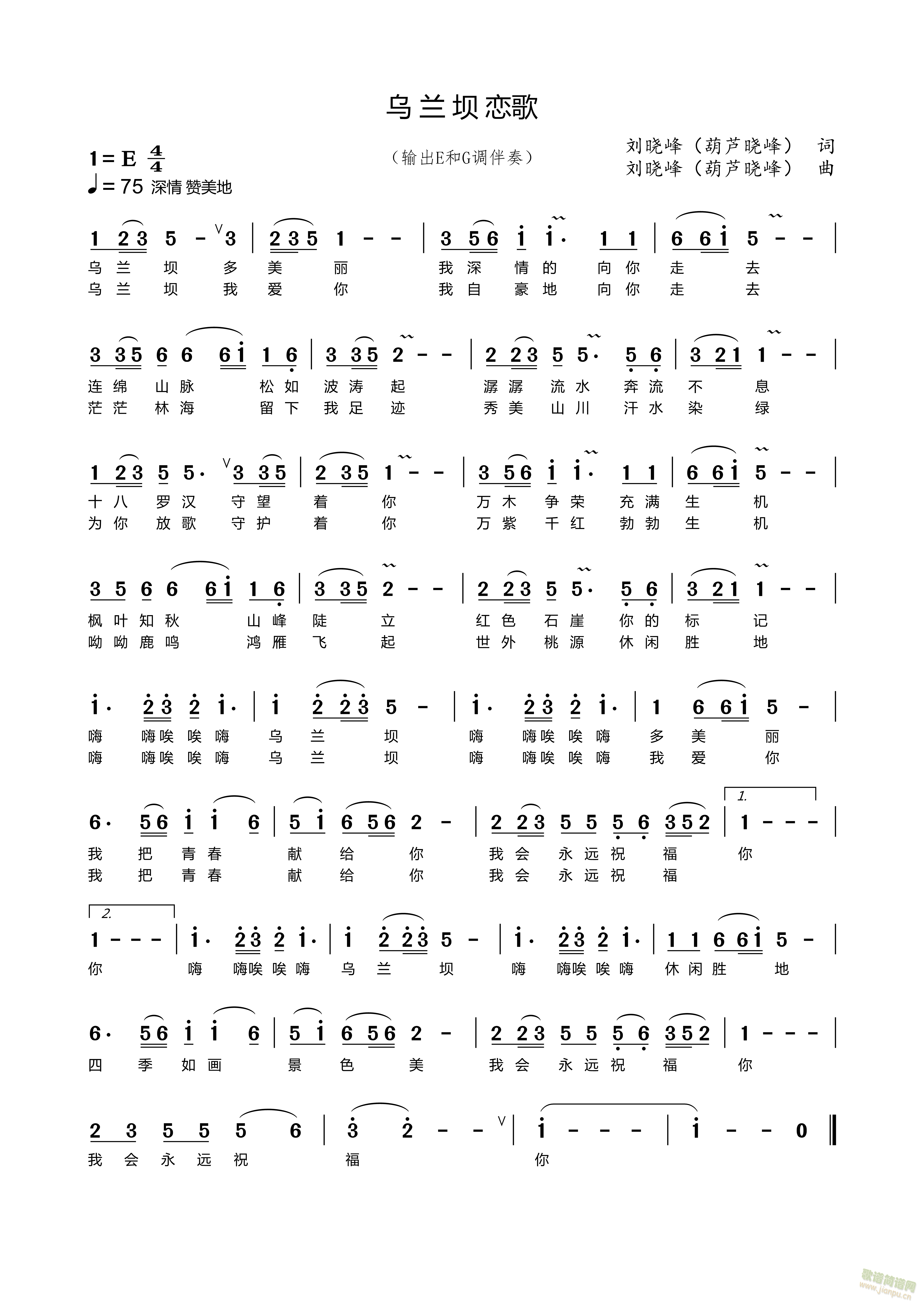 [五字歌譜]烏蘭壩戀歌 葫蘆曉峰