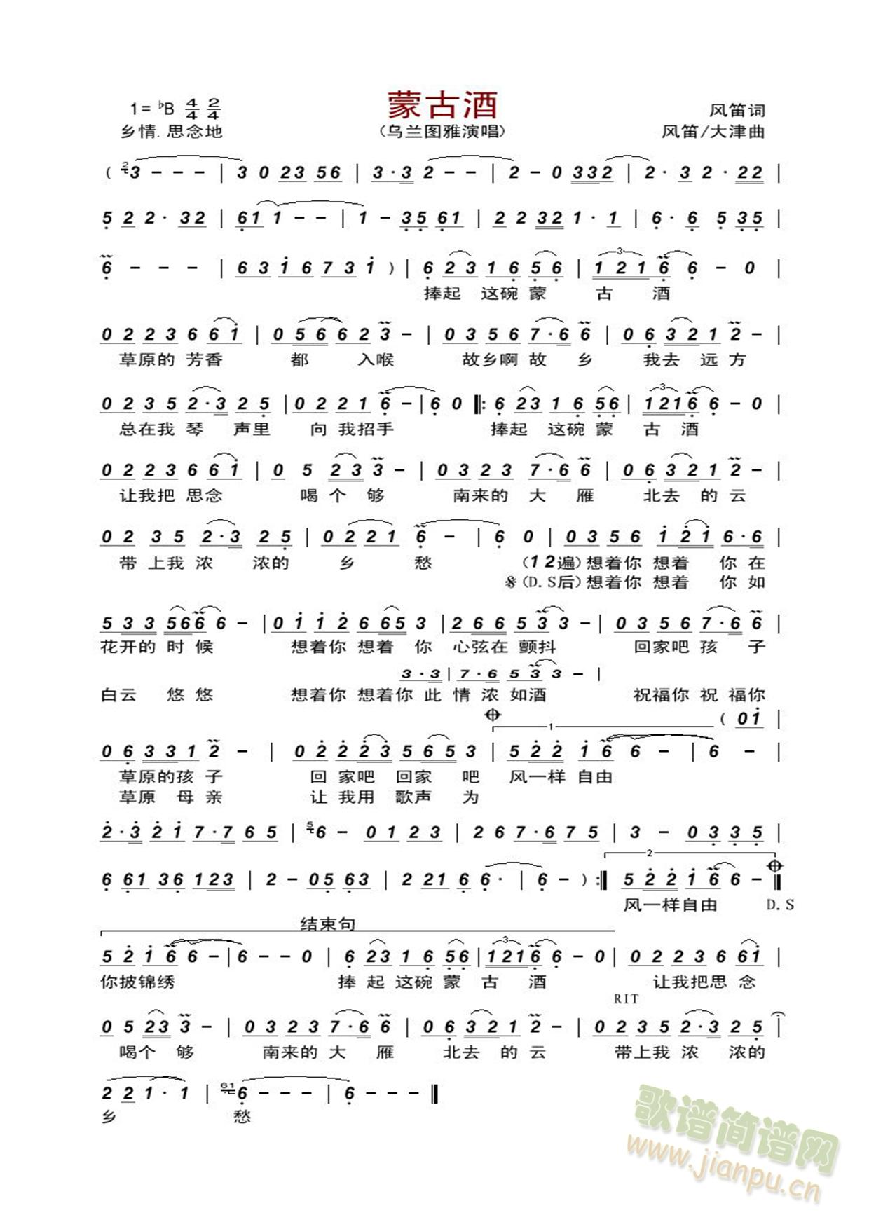 [三字歌譜]蒙古酒 烏蘭圖雅