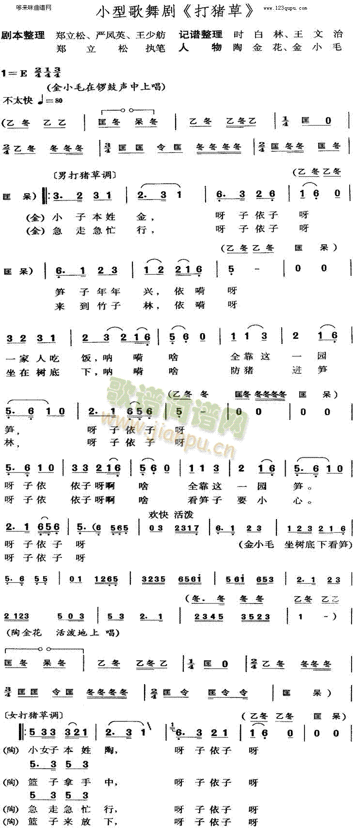 [三字歌譜]打豬草 (黃梅戲) 黃梅戲《打豬草》