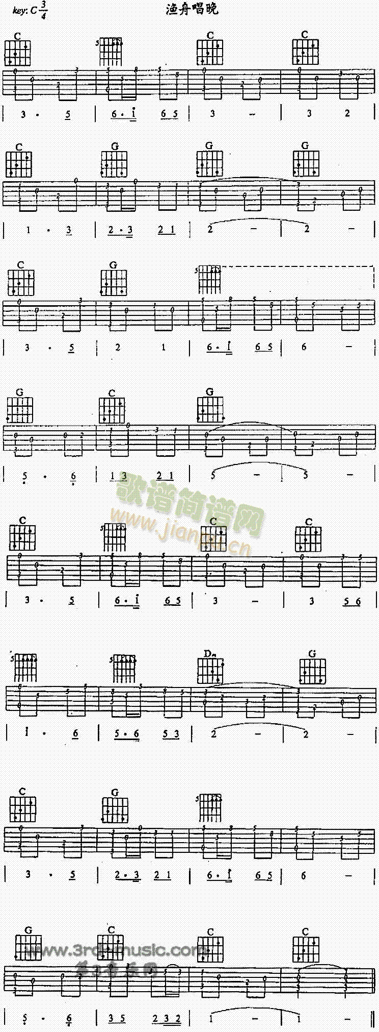 [吉他譜]漁船唱晚(獨(dú)奏曲) 未知