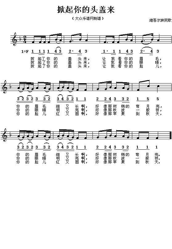 [七字歌譜]掀起你的蓋頭來(lái) 維吾爾族民歌